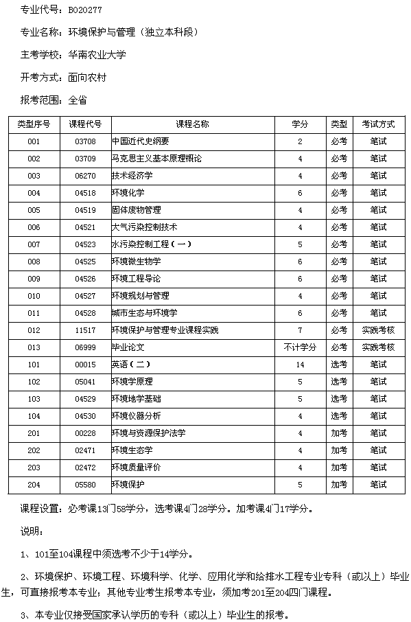 摘要 廣東2013年華南農(nóng)業(yè)大學(xué)環(huán)境保護(hù)與管理(本科)考試計(jì)劃