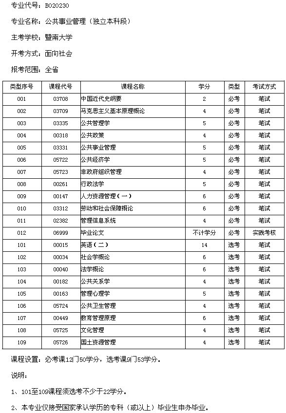 廣東2013年暨南大學公共事業(yè)管理(本科)考試計劃
