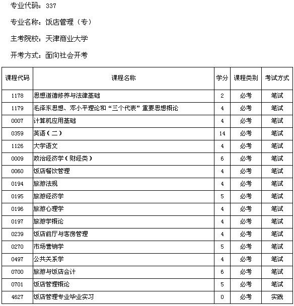 天津市2013年天津商業(yè)大學(xué)自考飯店管理(專科)考試計(jì)劃