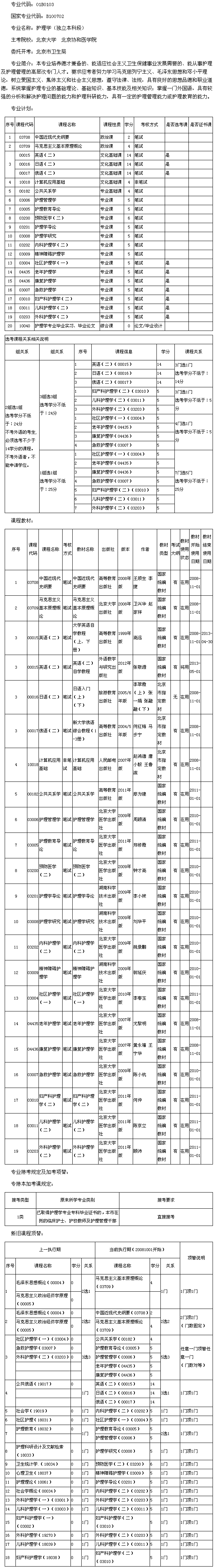 北京市2013年北京大學(xué)、北京協(xié)和醫(yī)學(xué)院自考護(hù)理學(xué)(本科)考試計(jì)劃