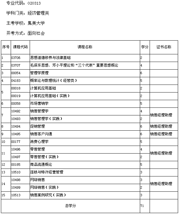 福建省2013年集美大學(xué)自考銷售管理(專科)考試計劃