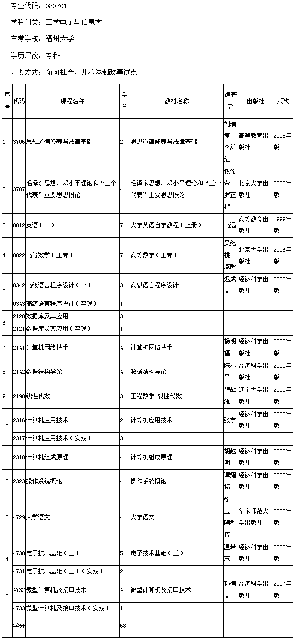 福建省2013年福州大學(xué)自考計算機及應(yīng)用(專科)考試計劃