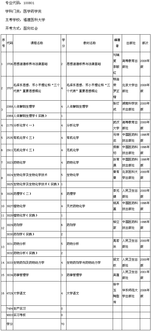 福建省2013年福建醫(yī)科大學(xué)自考藥學(xué)(??疲┛荚囉媱?/h1>