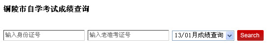 點(diǎn)擊進(jìn)入》》銅陵市2013年1月自考成績(jī)查詢?nèi)肟?/STRONG>