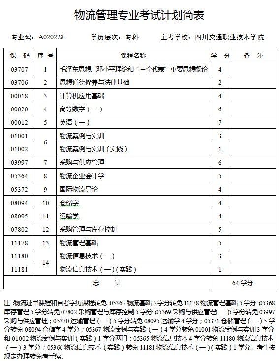 四川省2013年自考物流管理專業(yè)(??疲┛荚囉?jì)劃