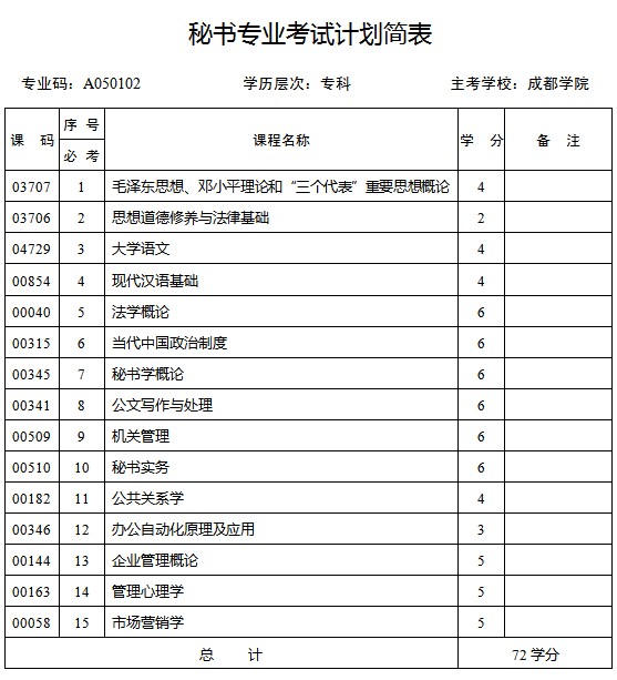 四川省2013年自考秘書(shū)專業(yè)(??疲┛荚囉?jì)劃