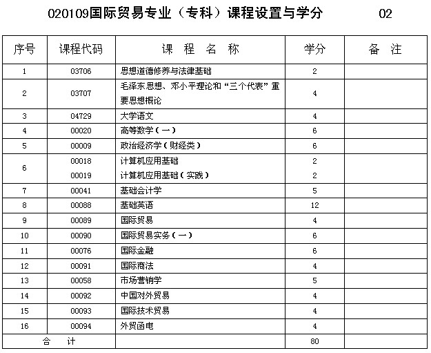 重慶市2013年自考國際貿(mào)易專業(yè)(專科)課程設(shè)置與學(xué)分
