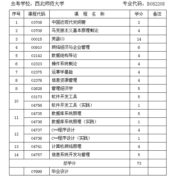 摘要 甘肅省自考計算機信息管理專業(yè)(本科)課程設(shè)置與學分