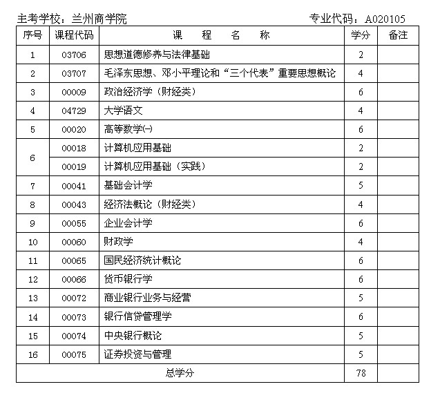 甘肅省自考金融專業(yè)(??疲┱n程設(shè)置與學(xué)分