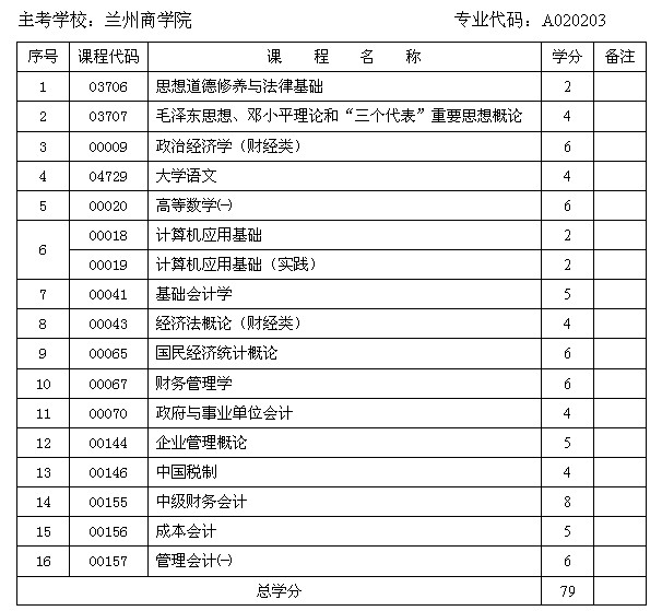 甘肅省自考會計專業(yè)(??疲┱n程設(shè)置與學(xué)分