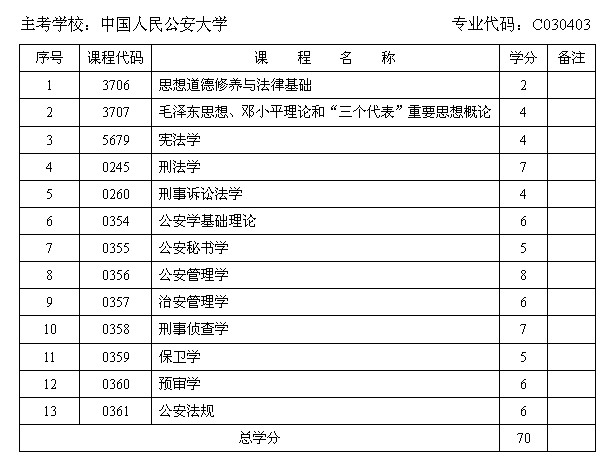 摘要 甘肅省自考公安管理專業(yè)(??疲┱n程設置與學分