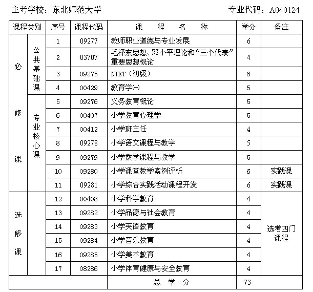 摘要 甘肅省自考義務(wù)教育專業(yè)(??疲┱n程設(shè)置與學(xué)分