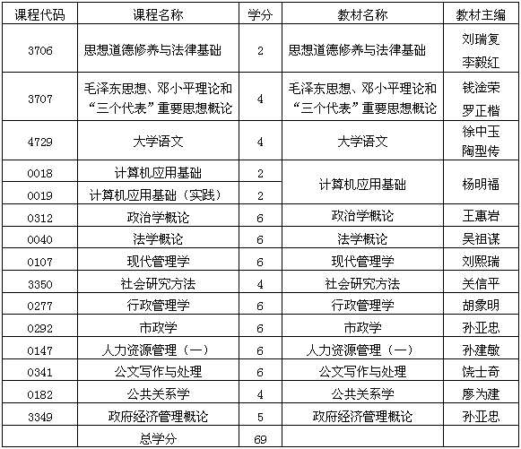 貴州省自學(xué)考試行政管理專業(yè)(專科)考試計(jì)劃