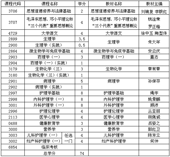 貴州省自學(xué)考試護理學(xué)專業(yè)(???考試計劃