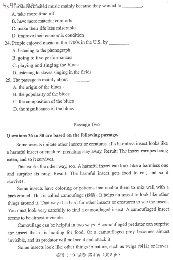 全國2013年4月自考英語(一)試題