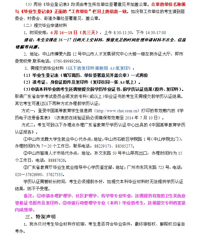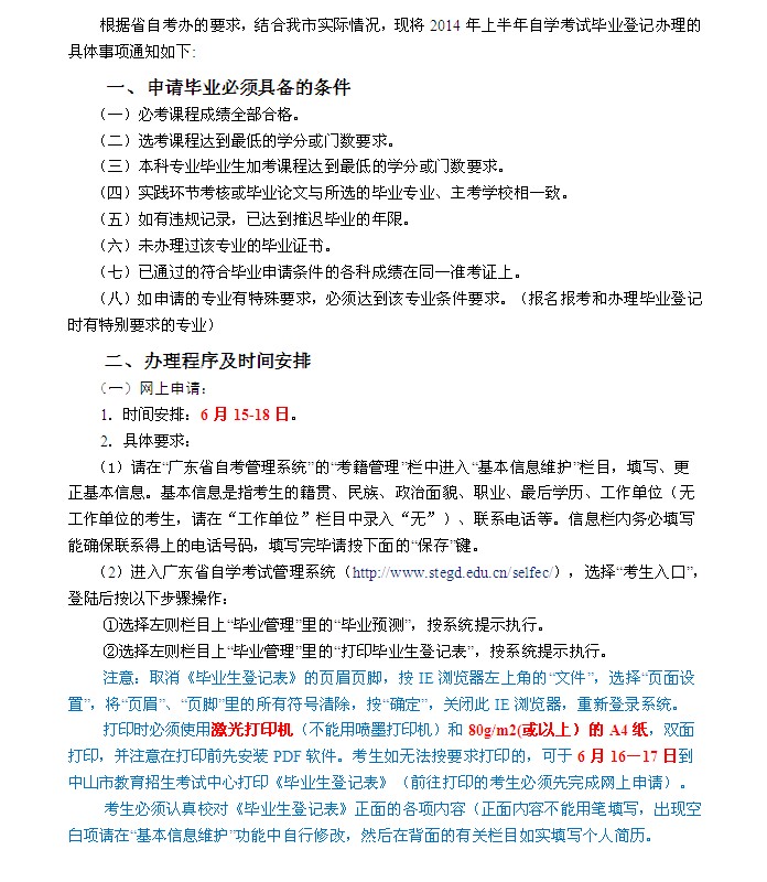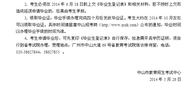 廣東中山市2014年上半年自考畢業(yè)辦理通知