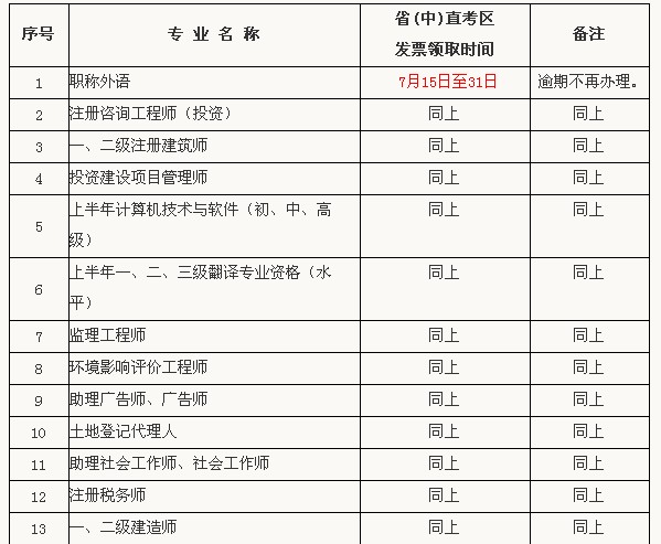 省直2013年度各類考試報(bào)名發(fā)票領(lǐng)取時(shí)間表