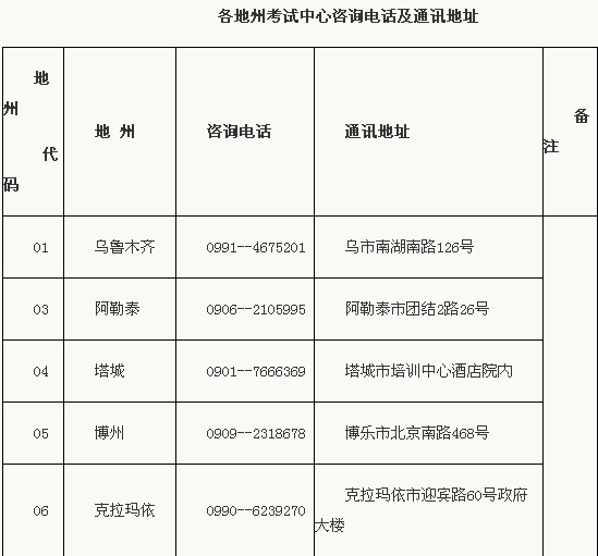 新疆各地州化工工程師考試中心咨詢電話及通訊地址