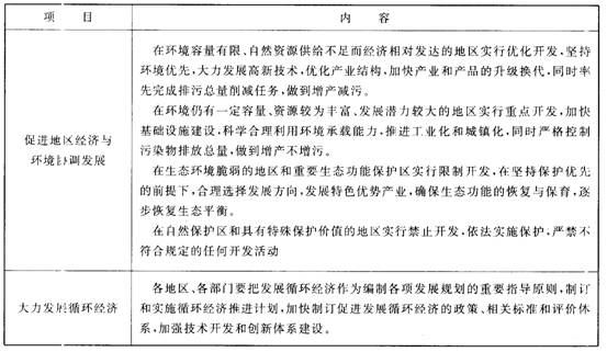 表7―1經(jīng)濟(jì)社會(huì)發(fā)展必須與環(huán)境保護(hù)相協(xié)調(diào)的有關(guān)要求