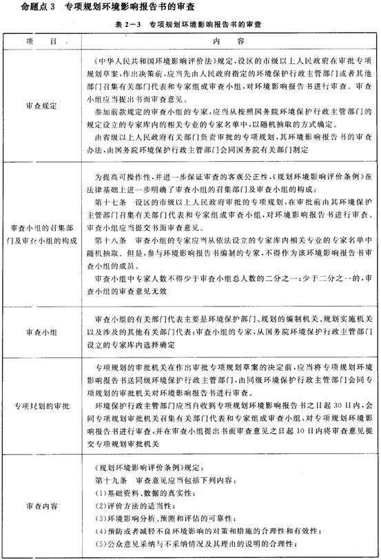 2.專項(xiàng)規(guī)劃的環(huán)境影響報(bào)告書應(yīng)包括的內(nèi)容也可作為一個(gè)命題點(diǎn)來考核。