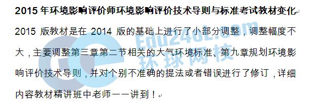 2015年環(huán)境影響評(píng)價(jià)工程師《導(dǎo)則與標(biāo)準(zhǔn)》考試教材變化