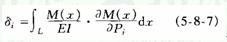 (3)由于變形能是對(duì)截面位置x的積分,而卡氏定理是對(duì)相應(yīng)廣義力求導(dǎo),故先積分后求導(dǎo)、或先求導(dǎo)后積分沒有影響。因此具體計(jì)算中,可不必求出結(jié)構(gòu)的變形能,而可直接用下列各式計(jì)算