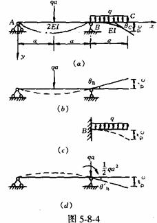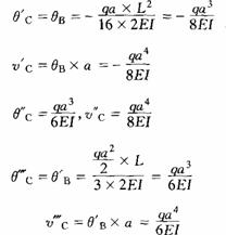 [例5-8-2] 試用疊加法求圖5-8—4所示外伸梁外伸端C點的撓度vc和轉(zhuǎn)角θC。