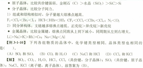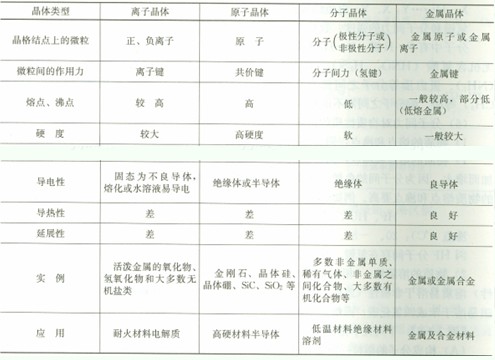 晶體的四種基本類(lèi)型及其有關(guān)性質(zhì)可簡(jiǎn)明地如表3-1-7所示。