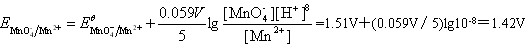 電對(duì)MnO4-/Mn2+的電極反應(yīng)為: