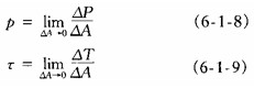 設在脫離體表面上任一點取一微小面積ΔA (圖6—1—2),所受壓力和切力分別為ΔP和ΔT,則該點的壓強p 和切應力τ為: