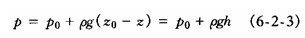 也有教材中用符號γ=ρg,表示單位體積流體的重量上式成p=p0+γh表示。