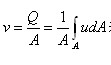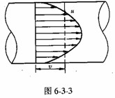 設(shè)元流過(guò)流斷面稱(chēng)dA,流體質(zhì)點(diǎn)的流速u(mài)(圖6-3-3)可得元流的流量dQ=udA。通過(guò)總流過(guò)流斷面A的流量應(yīng)等于無(wú)數(shù)元流的流量總和。總流過(guò)流斷面上實(shí)際的流速分布是不均勻的。如圖6-3-3所示,實(shí)際流速分布各點(diǎn)的流速是不同的。在工程中常用斷面平均流速v代替(圖中虛線)。