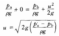 由于管的a、b端液面差為h,等于Pa-Pb/ρg則流速為: