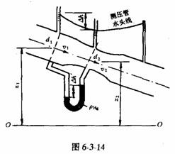 文丘里流量計(jì)是用來測量管道流量的,它的形狀如圖6—3-14所示。使用時(shí),將它連接在管道上,在流量計(jì)上游進(jìn)口斷面1—1和在收縮管中的漸變流斷面2—2處各接測壓管。利用兩測壓管的差值,根據(jù)能量方程可算出管中流速和流量。任選一基準(zhǔn)面O—O,寫出斷面1—1和2—2的能量方程(不計(jì)水頭損失):