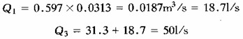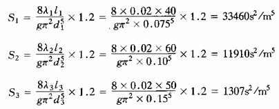[解] 該管路由管1與2并聯(lián),再與管3串聯(lián)。先按式(6—5—14)計算各管總阻抗S