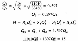 [例6-5-5] 如圖6-5—11所示管路,已知H=15m,d1=75mm,l1=40m,d2=100mm,l2=60m,d3=150mm,l3=50m,沿程阻力系數(shù)λ=0.02,局部損失可按沿程損失的20%計算。求各管流量。