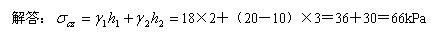 γ=17kN/m3 ;第二層為粉質(zhì)秸土厚4m, γ=19kN/時(shí), ds=2.73, w=31%;第三層淤泥質(zhì)蒙古土厚6m, γ= 18. 2kN/時(shí), ds=2. 74, w=41% ;第四層粉土厚3m, γ= 19. 5kN/ 時(shí), ds=2.72, w=27%;第五層砂巖未打穿。第四層底面處的自重應(yīng)力為(C)kPa。