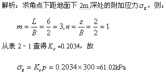 解析:過基底A兩個大邊的中點,將A基礎(chǔ)劃分為兩個相同的2m×3m的矩形,若求距地面下2m深處的附加應(yīng)力 ,則: