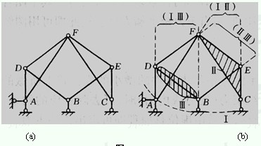 [例1-4] 分析圖1-7(a)所示體系的幾何組成。