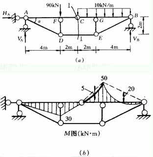 例2-5] 求作圖2—17a所示組合結(jié)構(gòu)的彎矩、剪力、軸力圖。