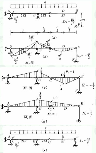 (1)MP圖、EF桿軸力Np,以及求ΔDV及θcc的虛設(shè)狀態(tài)和相應(yīng)的Mi、Ni分別如圖3—5b、c、d所示。