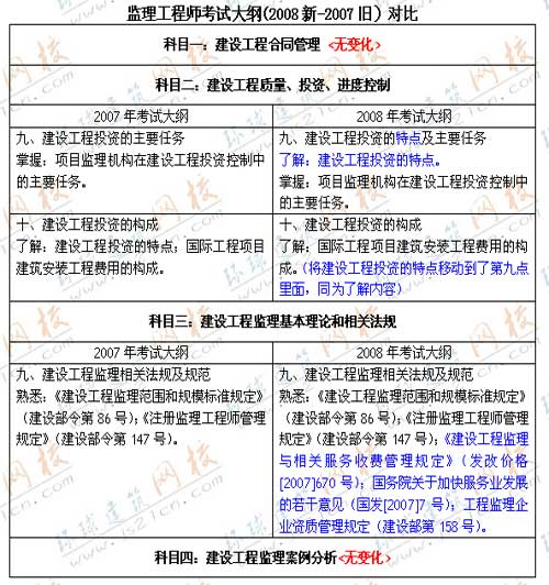 監(jiān)理工程師考試大綱(2008新-2007舊)對比
