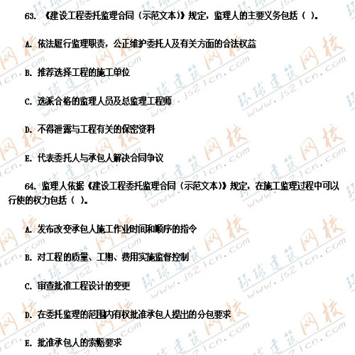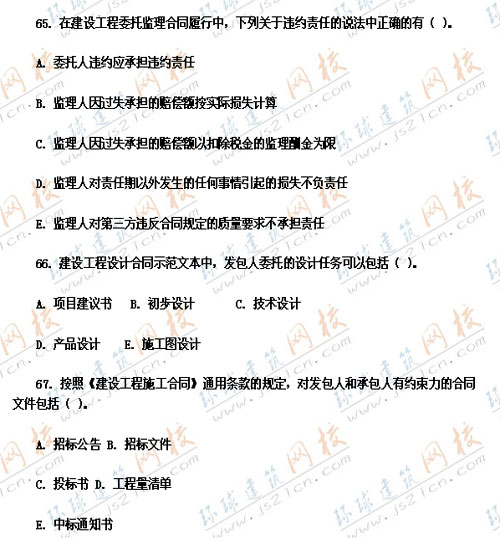 2007年監(jiān)理工程師考試真題《工程建設(shè)合同管理》――多選題