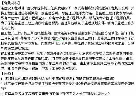 2011年監(jiān)理工程師考試案例分析臨考模擬試題(4)