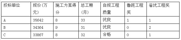 經(jīng)評標(biāo)老師評審,各投標(biāo)單位的得分情況見下表