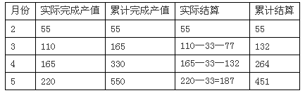 工程各月實(shí)際完成產(chǎn)值見(jiàn)下表。