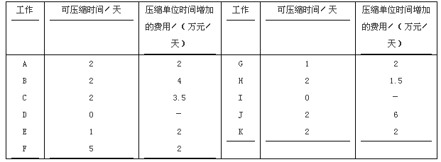 某施工單位編制的某工程網(wǎng)絡(luò)圖如圖5-50所示,網(wǎng)絡(luò)進(jìn)度計劃原始方案各工作的持續(xù)時間和估計費用如表5-27所示。