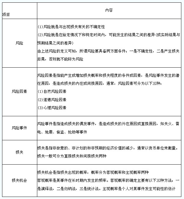 1.風險的定義與相關概念(表4-1)