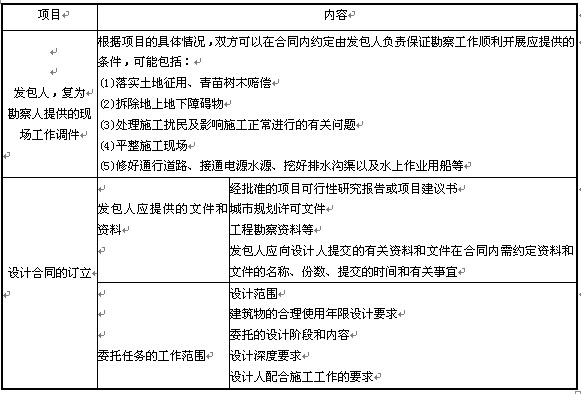 表5-1發(fā)包人應(yīng)為勘察人提供的現(xiàn)場工作條件及設(shè)計合同的訂立