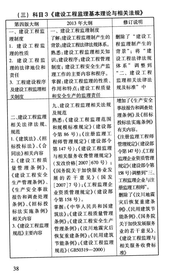 2014監(jiān)理工程師考試大綱(第四版)與2013年對(duì)比